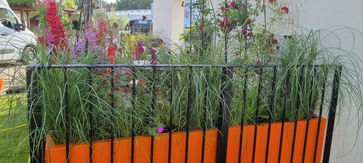 The Cirrus Garden is a a mix of vibrant garden, full of annuals and perennials but also colour edible herbs, salads and veg.